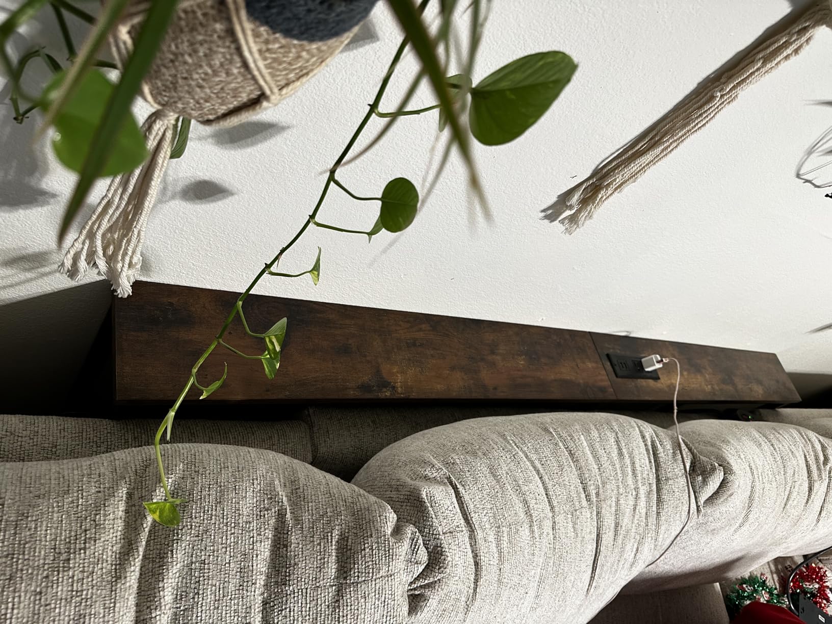 I bought this stand for behind my couch. It arrived today as expected. The instructions were clear and easy and so quickly to put together. The usb and the wall plugs work great. You can put them in the middle or to the side. I put it to the middle. I have it betweeenthr wall and my couch as I needed something to plug in phone and computer when I’m on the couch. Also nice to have my lamp so I can read on the couch. My space is small so I do t have room for a side table. My couch is long and I placed it centralized ri the couch but I decided I like it so much I’m ordering another to put side by side all along the couch. I have some heavy ametista and it hold a the weight no problem.This would look good also if against back of couch facing a kitchen or a hallway. It’s a really cute table.Can’t wait to get my nex t one.